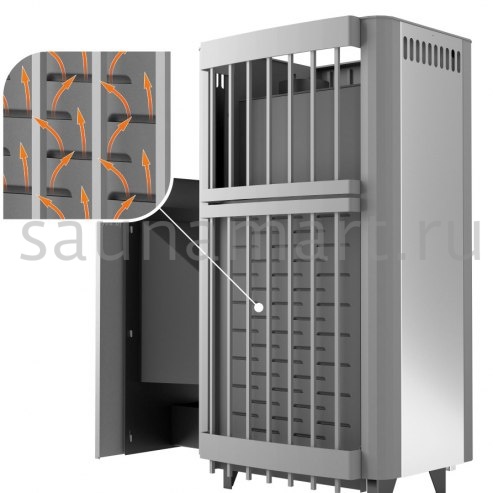 1. Для сохранения динамики нагрева воздуха в печах-сетках «Костёр» сохранены конвекционные сечения на передней и задней стенках топки, что позволяет нагревать все помещения бани всего за 1,5–2 часа.