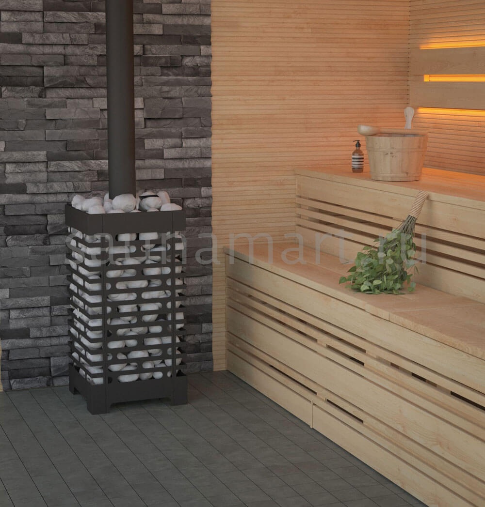 - Большая масса камней, закладываемых в сетку-кожух печи, обеспечивает стабильность температуры в парилке и является мощным парогенератором.