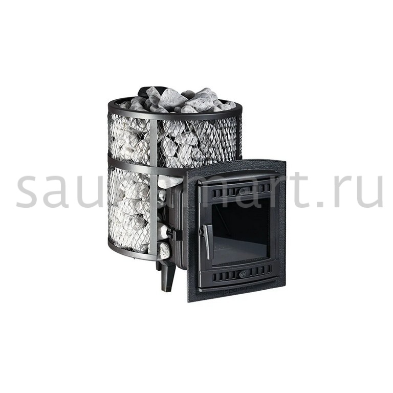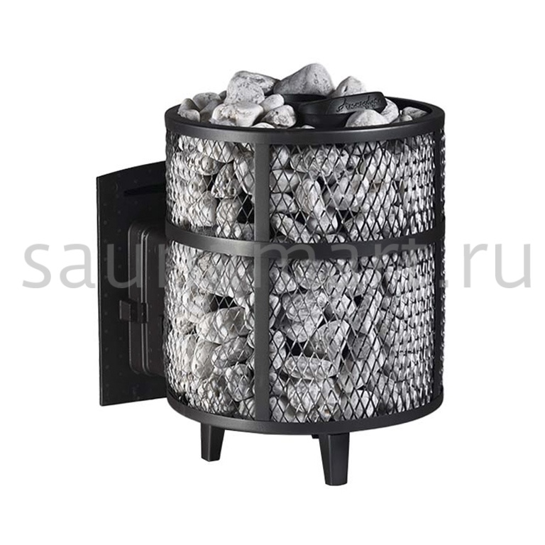 Ультра компактная модель банной печи. Кожух печи изготовлен в виде сетки из нержавеющей стали и полностью заполняется природными камнями, обеспечивая высокую динамику нагрева парильного помещения.