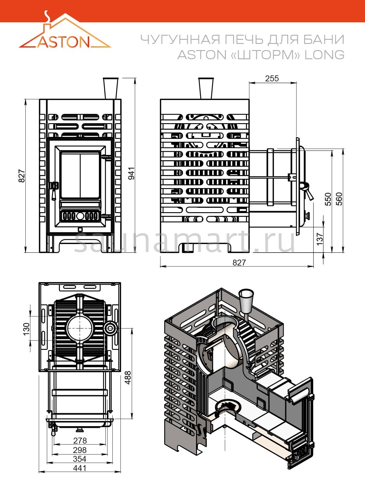 Преимущество печей ASTON: Конструкция разработана для максимальной тепловой эффективности при минимальном расходе ресурсов — времени и топлива. Каменка и корпус имеют скошенные поверхности, что обеспечивает свободное движение дымовых газов без образования "дымовых карманов". Такая геометрия позволяет всем частям печи прогреваться равномерно как по температуре, так и по времени, обеспечивая полное сгорание топлива и быстрый результат.
