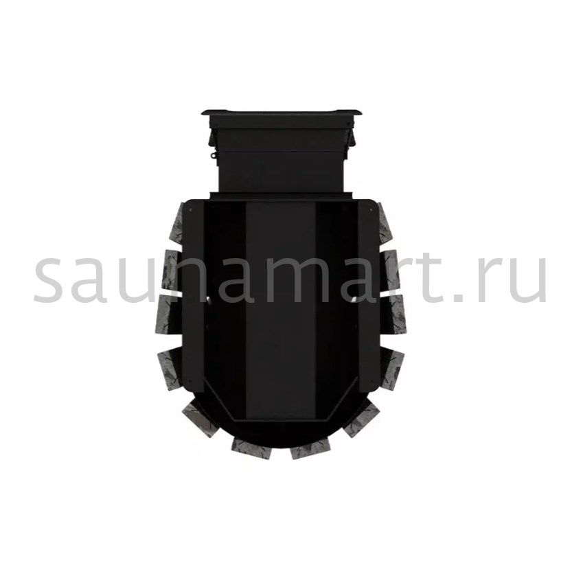 Топка печи сделана из жаростойкой котловой стали 09Г2С, в наиболее нагруженных местах толщина металла 5 мм. Данная модель предназначена для топки из смежного помещения: предбанника, моечной или комнаты отдыха. Топочная дверца комплектуется большим панорамным стеклом, через которое можно наблюдать за горением дров.