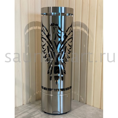 Материал изготовления ТЭНов: нержавеющая сталь. Корпус выполнен из листового металла с регулируемыми опорами до 20 мм. К данной модели электрокаменки необходимо докупить выносной пульт управления, который служит для поддержания температуры, так как встроенного управления в электропечи нет. Цилиндрическая конструкция с высокой загрузкой камня позволяет получать мягкое тепло, согреваясь от камня. Печь обеспечивает хорошую циркуляцию воздуха между ТЭНами и высокую теплоотдачу каменки. При желании можно подливать воду на разогретые камни (в разумных пределах).