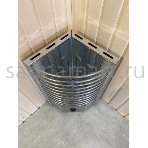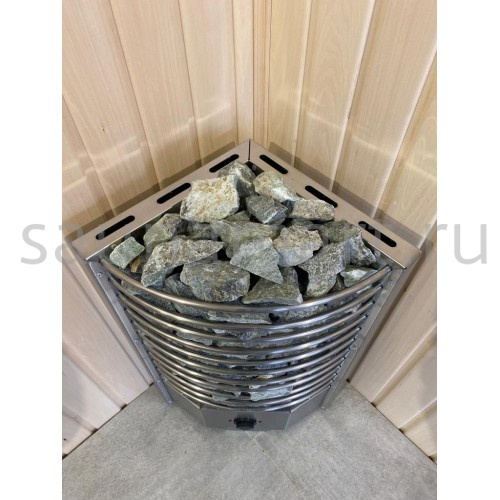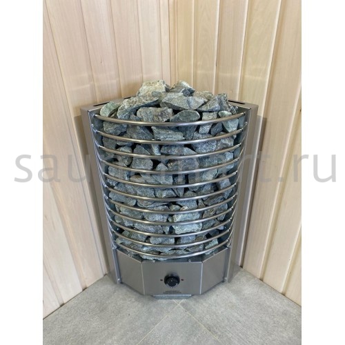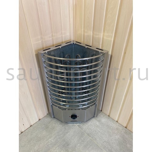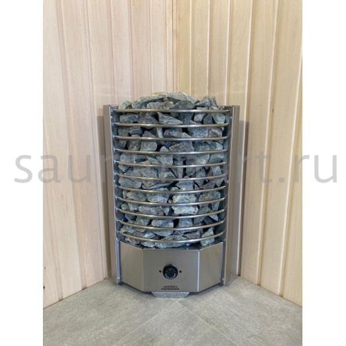 Электрическая печь ЭКМ 6 кВт "Олимпия Плюс" — угловая модель с встроенным пультом управления, идеально подходящая для бань. Производится в России (г. Челябинск) и подходит для помещений объемом от 6 до 10 м?.