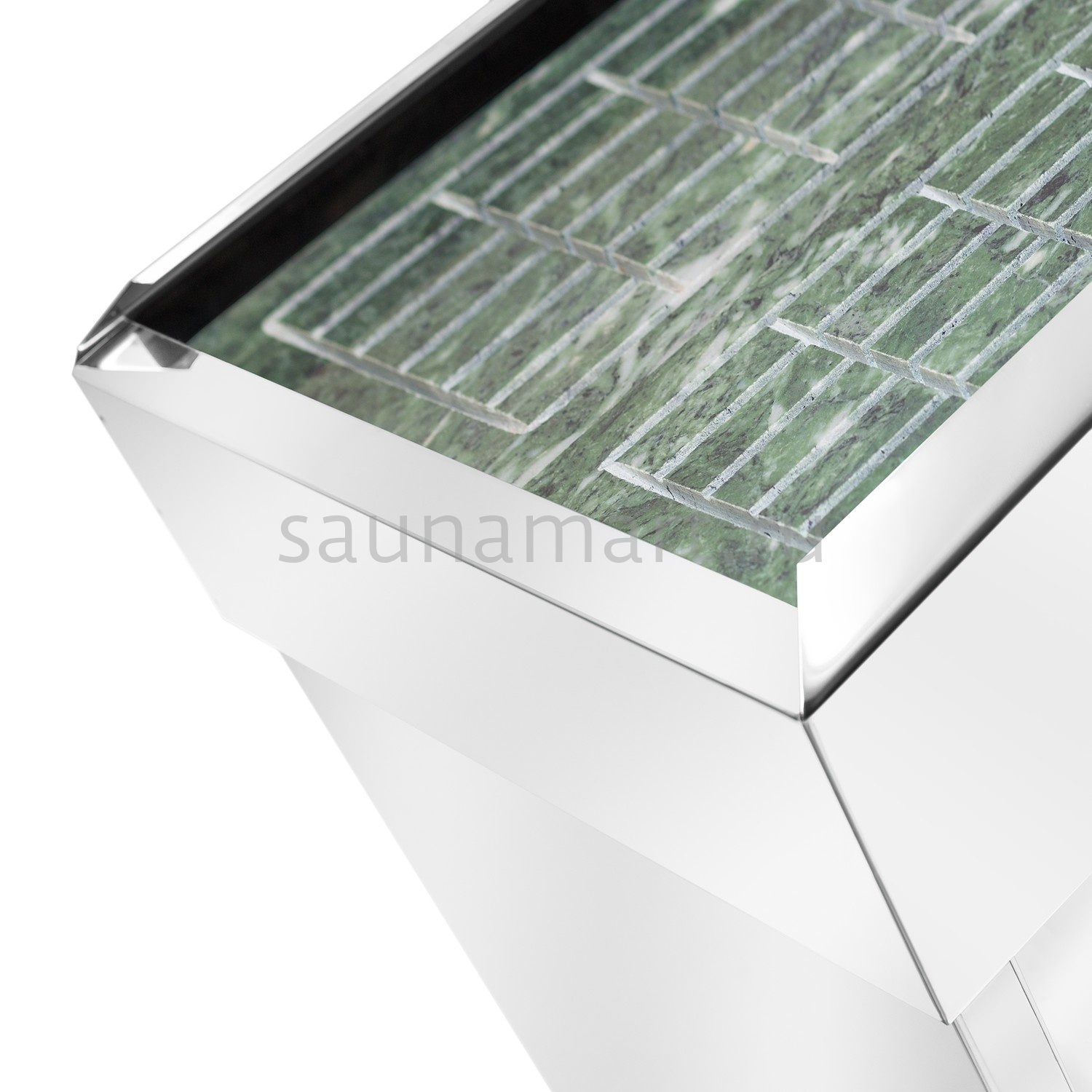 • Нагревательные плиты: Электрокаменка оздоровительной серии в комплекте с двумя горизонтальными нагревательными плитами из природного камня Змеевика. Каждая плита высотой 6 см, массой 15 кг, с распилами специальной формы, может использоваться в качестве испарителя. На такой плите вода испаряется постепенно и создает благоприятный и комфортный климат в бане. Змеевик уже долгие годы используется для изготовления печей для бань. Он хорошо нагревается, долго держит тепло и выдерживает резкие перепады температур, не растрескиваясь.