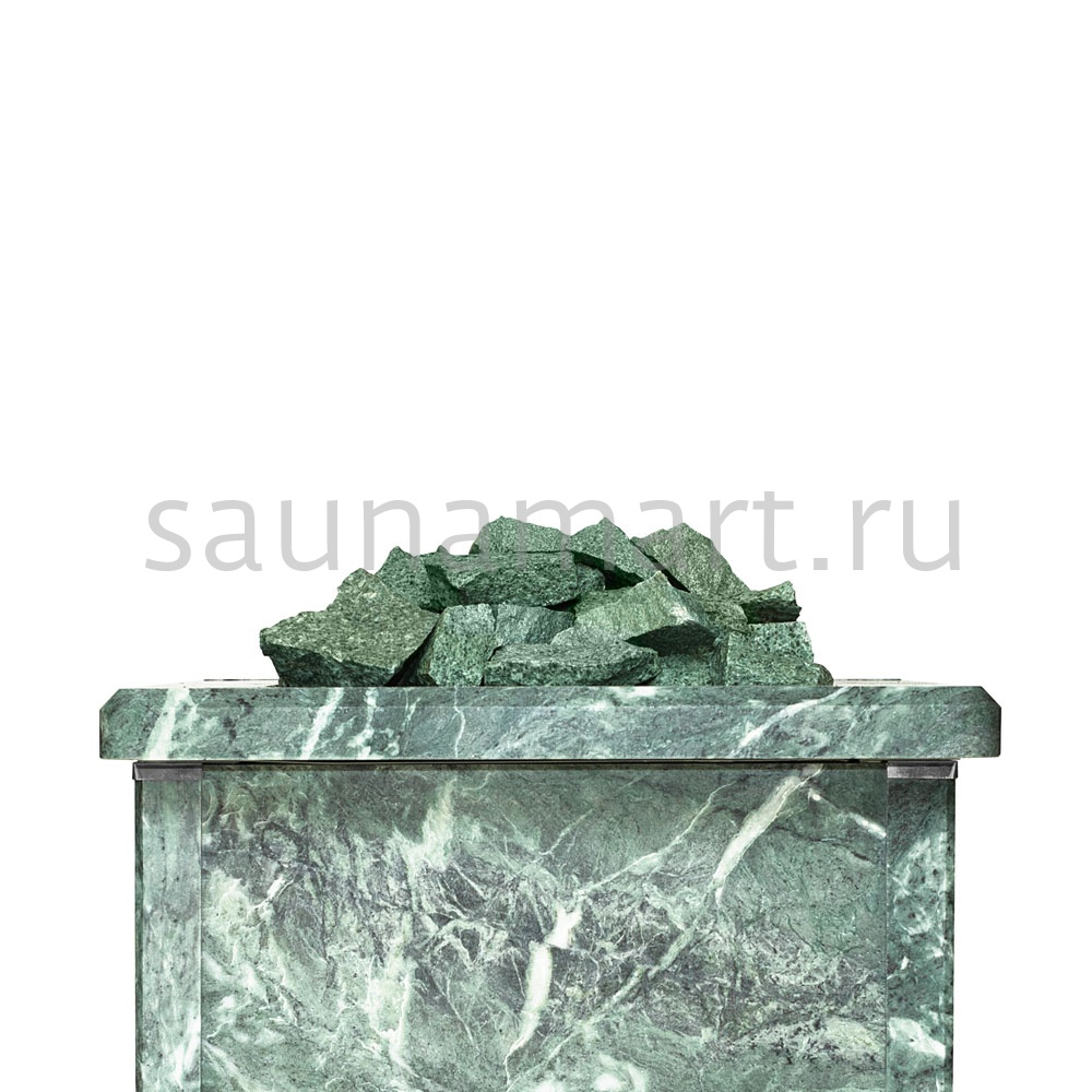 - Целебные свойства: Электрическая каменка со всех сторон облицована натуральным змеевиком, который стильно смотрится в парильном помещении. Змеевик, называемый «аптекарским камнем», обладает целебными качествами: оказывает обеззараживающий эффект, положительно влияет на кости, успокаивает и укрепляет иммунитет.