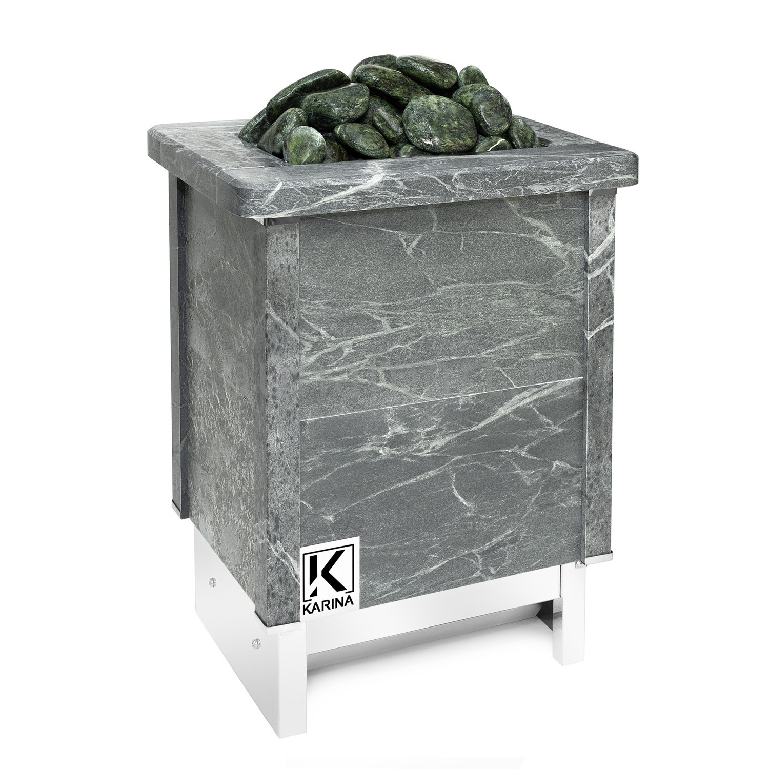 Электрическая печь KARINA Quadro 7,5 Талькохлорит – это электрокаменка, облицованная натуральным камнем со всех сторон, и обладающая мощностью оптимальной для семейных саун и средних бань объемом до 9 м3.