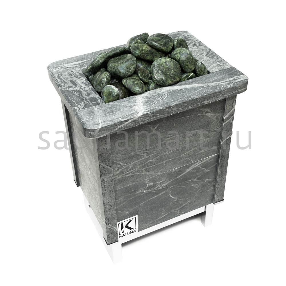 Электрическая печь KARINA Quadro 9 mini Талькохлорит – это электрокаменка, облицованная натуральным камнем со всех сторон, и обладающая мощностью оптимальной для семейных саун и средних бань объемом до 14 м3.