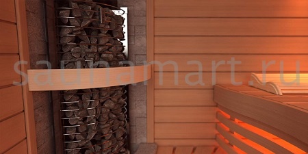 Электоркаменка угловой установки не занимает много места, при этом вмещает большой объем камней, благодаря чему достигается особенное качество пара. Она успешно может эксплуатироваться многие годы не только в личных целях, но также и в общественных саунах при фитнес-центрах, бассейнах и отелях.