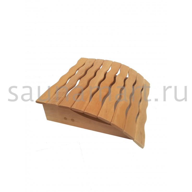 Подголовник пружинный анатомический для бани и сауны  35х10х32 см. Изготовлен из ольхи. Рейки волнистой формы. Доска качественно обработана. МЫ ГАРАНТИРУЕМ: долговечность изделия и оптимальный комфорт при использовании. Подходит для использования в парной бани или сауны, комнате отдыха.