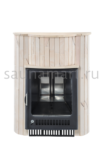 Для печи «Оптима» серии ПФ производитель V?hringer выпускает порталы из натурального мрамора, змеевика и жадеита. Облицовочные материалы поступают на завод в слэбах, заготовки разрезают на пластины, которые затем навешивают на печь.