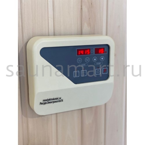 Пульт управления элeктрoкaмeнкой (электропечью для сауны) ПУЭКМ "Ресурс" цифровой программируемый до 15 кВт включительно. Пульт устанавливается в предбаннике, а датчик заводится в парилку. Датчик с кабелем идут в комплекте с пультом. Возможно удлинение кабеля, методом наращивания. Длина кабеля с датчиком температуры 3 метра.
