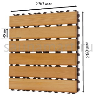 Sawo сборный деревянный коврик на пол идеально подойдет для вашей сауны, бани, душевой, комнаты отдыха и даже террасы. Коврики легко собираются в красивый кедровый настил по вашим размерам. Поверхность деревянных ковриков очень приятная для ходьбы босиком, структура кедра никогда не даст вам подскользнуться мокрыми ногами. Коврики прекрасно впитывают воду, их легко просушить или просто проветрить банное помещение.