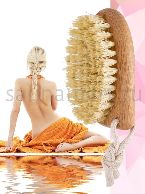 Щетка банная для сухого массажа из натуральной растительной щетины тампико, 79 пучков, средней жесткости, колодка обработана воском и льняным маслом, с петлей для удобного хранения. Размер 10х3,5х5,5 см. Щетка для сухого массажа тела поможет: отшелушить омертвевшие клетки эпидермиса; снять усталость; улучшить самочувствие и настроение. Щеткой можно массировать все тело. С ее помощью можно добиться эффекта иглоукалывания: после массажа похлопать по телу щеткой и Вы ощутите, как сотни щетинок одновременно укалывают кожу. Данная процедура оказывает бодрящий эффект, особенно в сочетании с контрастным душем. При применении щетки для сухого массажа, можно добиться: нормализации работы лимфатической системы; повышение тонуса кожи; выравнивания контуров тела и следов неровностей кожи (целлюлита); стимулирования выработки коллагена. Массаж проводится сухой щеткой, по сухой коже. Движения должны идти от стоп вверх к голеням, бедрам, ягодицам по направлению лимфотока.