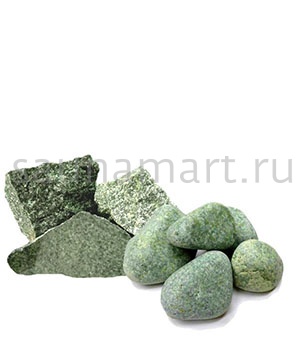 Камень жадеит шлифованный крупный фракции 100-150 мм — элитный наполнитель для банных печей. Упаковка: ведро 20 кг с сертификатом качества.