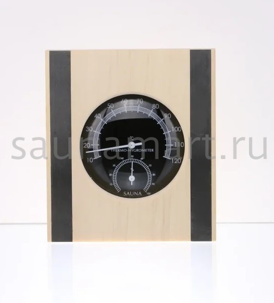 Термогигрометр это комбинированный прибр для измерения температуры и влажности в парной. В лаконичной, стильной, широкой рамке из древесины осины находится большой, круглый, графичный циферблат, по бокам рамка украшена стальными вставками. На циферблате две шкалы. Одна из них - это гигрометр, который с точностью измерит уровень влажности, другая - термометр, который сообщит о температуре воздуха. Данный прибор прекрасно подойдёт для использования в парной. Благодаря универсальному дизайну он станет прекрасным дополнением любого интерьера. Наш термогигрометр соответствует всем требованиям для данных приборов -оснащен не сильно нагревающимся корпусом и способен выдерживать перепады температуры и влажности.